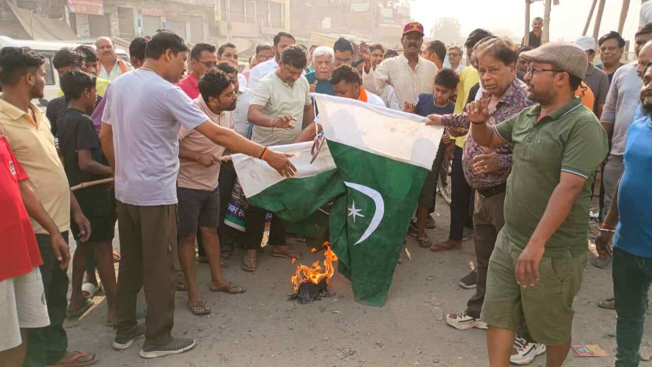 पड़ाव चौराहे पर पहुँचकर लोगों का गुस्सा फूट पड़ा। वहाँ प्रतीकात्मक रूप से पाकिस्तान के झंडे को जलाकर आतंकवाद के प्रति अपनी नफरत का इजहार किया गया। इसके साथ ही जूते-चप्पलों से झंडे की पिटाई कर आक्रोश का प्रदर्शन किया गया। पूरे घटनाक्रम में पुलिस बल सतर्कता से मौजूद रहा, ताकि स्थिति नियंत्रण में रहे।